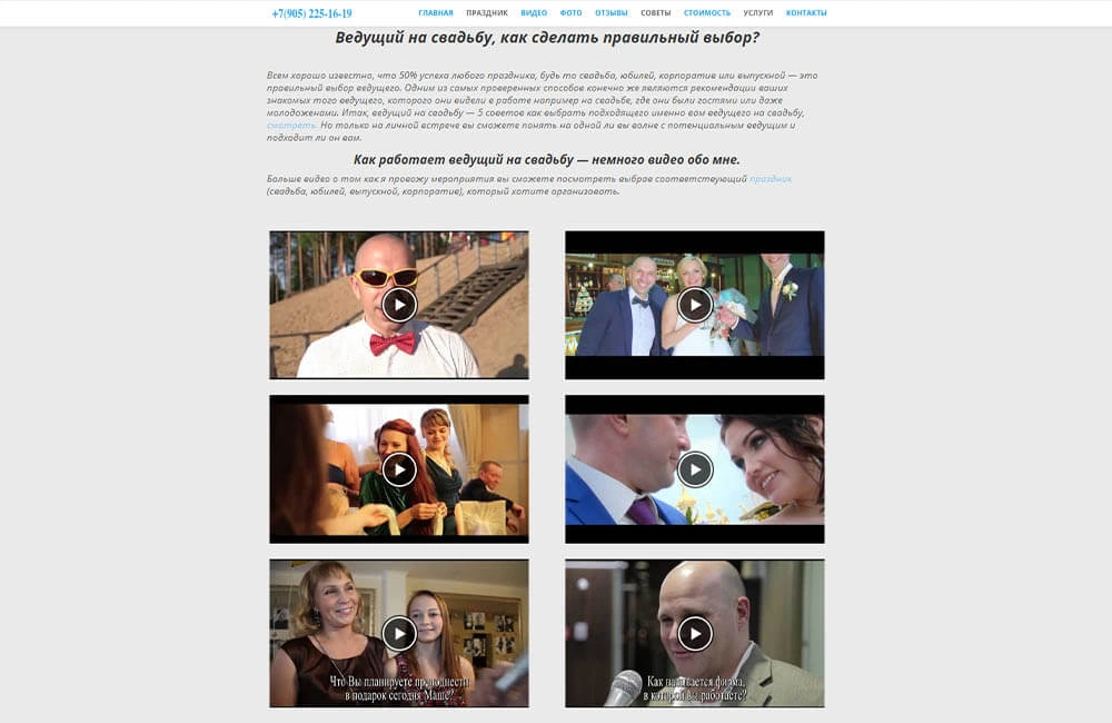 • Сайт для ведущего на свадьбу